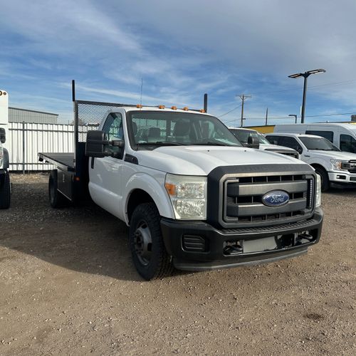 DAS Trucks is proud to offer this 2015 Ford F-350 Super Duty XL, featuring a massive 12' Flatbed and a dually rear-wheel-drive configuration. This 4x2 workhorse is powered by the reliable 6.2L Flex Fuel V8, providing a strong balance of power and durability. With low mileage for the year and a high GVWR of 14,000 lbs, this truck is designed for heavy hauling and long-term utility. It has been fully inspected, reconditioned, and is ready for the job site