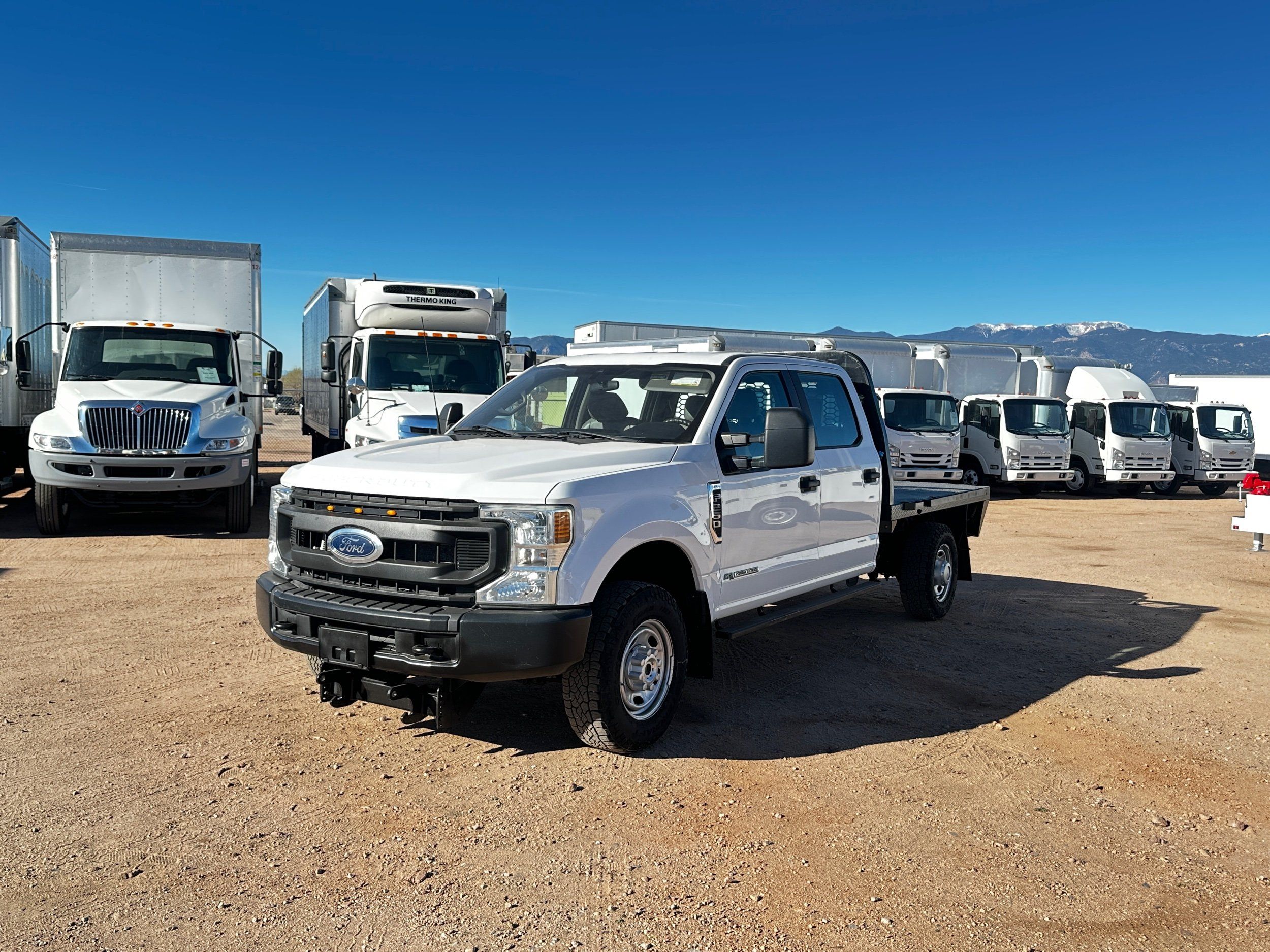 DAS Trucks presents this powerful 2022 Ford F-250 XL 4WD Crew Cab, equipped with a heavy-duty 8' Knapheide Flatbed. This truck is a workhorse, featuring the formidable 6.7L PowerStroke V8 Turbo Diesel engine and a 10-speed automatic transmission. Built for maximum utility, it comes ready with a gooseneck hitch, a class V tow package, and integrated tool storage. Fully serviced and reconditioned, this late-model Super Duty is prepared for the most demanding jobs.