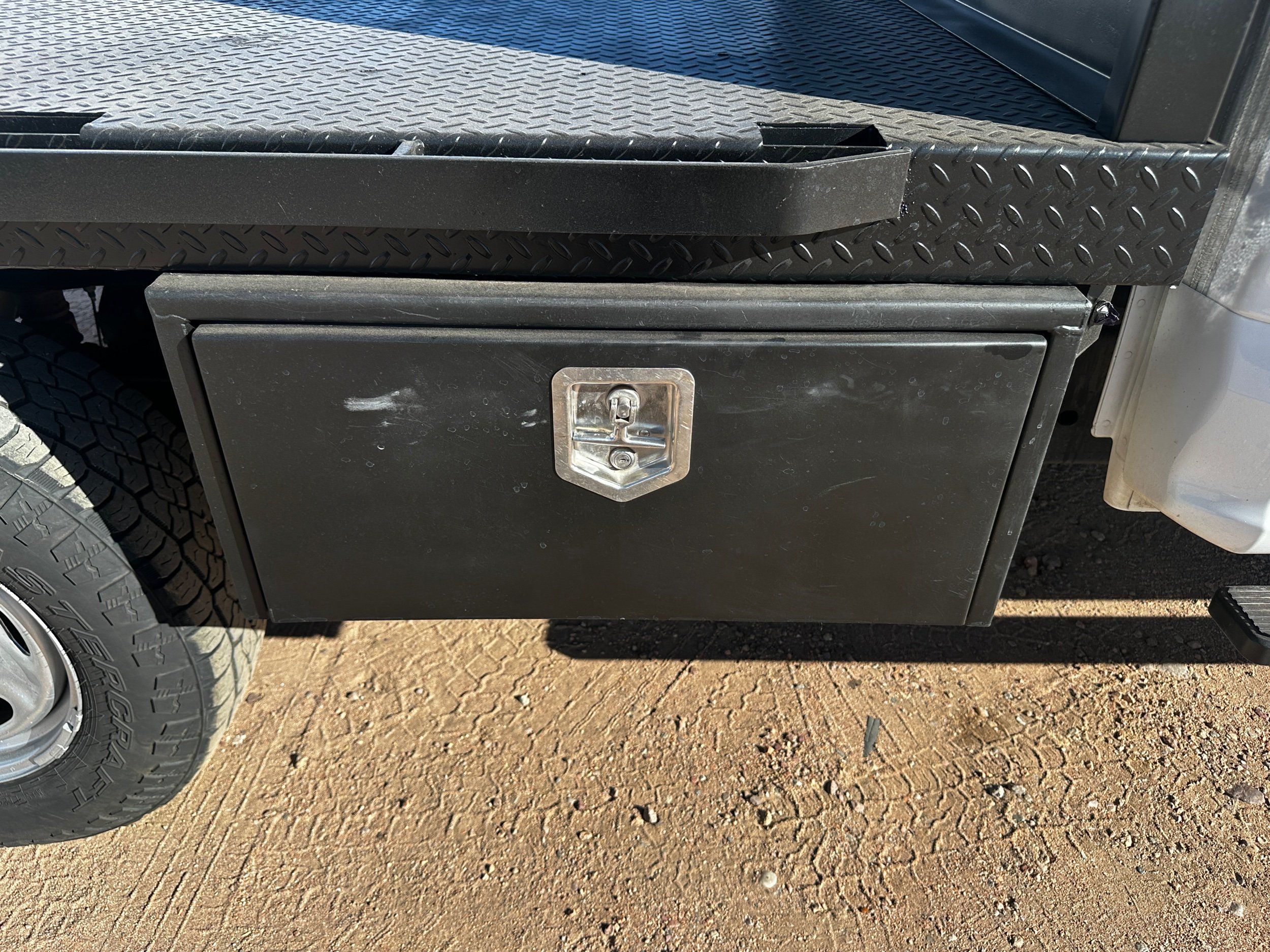 • Specialty Equipment: 8'3" Knapheide Flatbed, Integrated Tool Box, Gooseneck Tow Hitch